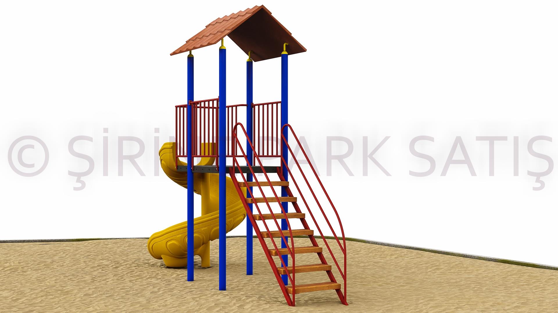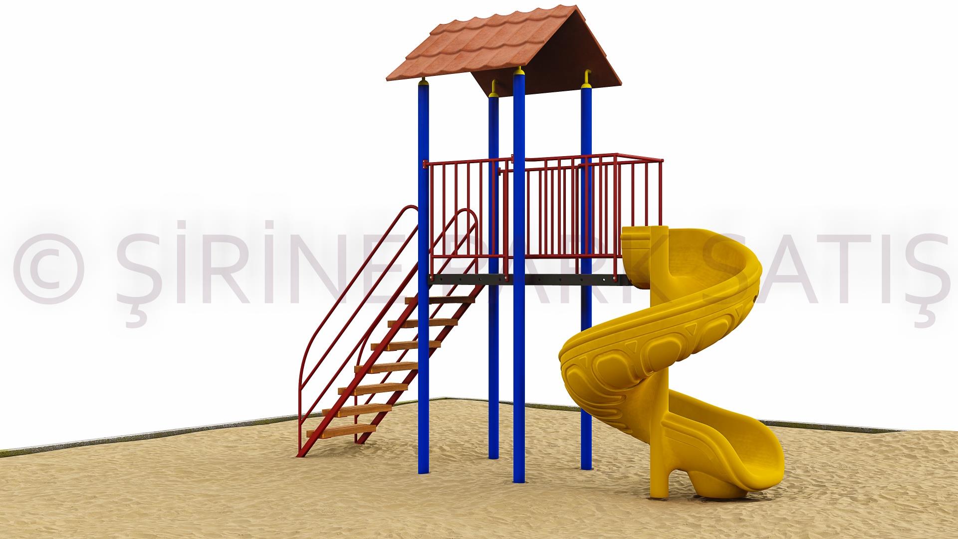 Metal Malzeme = Merdiven korkuluğu + Bariyer korkuluğu + kaydırak çıkış ağızı metal korkuluk 25x1,20 boru + Ø84 Kule borusu Merdiven basamakları empernyeli ahşap 5x10 kalınlığında.